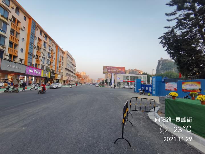 该路段施工位于向阳路(八步区政府前至新宁街路段,含向阳路与新宁街交叉路口),长约485米,于2021年10月21日正式开工,计划工期42天。自开工以来,该项目在各方努力下,克服了周边交通人流车流量大、持续降雨、地下管线众多、软弱基础、地表水丰富等各种困难,最终取得了提前道路通车这一阶段性胜利,为地下人防工程项目下一步的顺利推进奠定了良好基础。