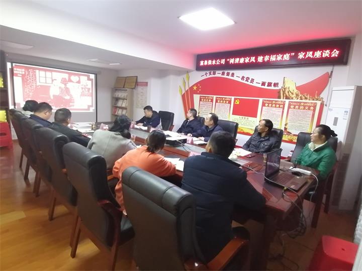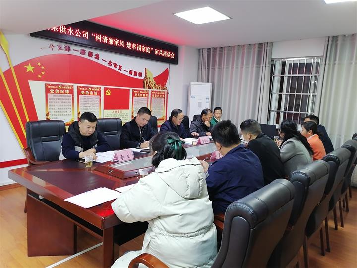 为不断践行和培育廉洁家风,推动廉洁意识深入家庭、深入人心, 12月12日晚,富泉供水公司召开“树清廉家风 建幸福家庭”领导干部配偶家风座谈会,会议由公司总经理曹国斌主持,公司执行董事陈剑锋出席会议并讲话,公司中层以上领导干部及其家属参加了会议。
