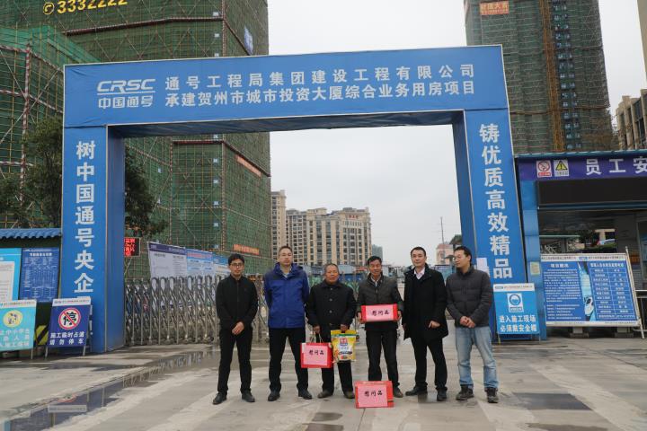 1月28日下午,贺州城投公司领导班子深入城投大厦等项目开展2022年“迎春送暖 稳岗留工”慰问活动,向春节期间留贺过年、坚守岗位的异地农民工送温暖、送祝福,引导更多异地农民工留贺安心过年。