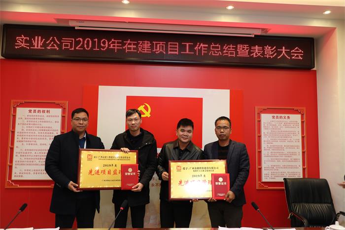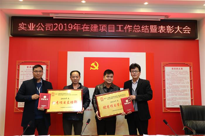 为总结2019年工作经验,引领有关项目施工、监理单位学先进、当先锋、做模范,发挥先进典型的示范带动作用, 12月31日,正赢实业公司召开2019年在建项目工作总结暨表彰大会,对2019年在建项目工作进行了回顾和总结,对获得优秀(先进)项目管理部和监理部进行了表彰,并对2020年元旦和春节期间工作进行了安排和部署。贺州城投集团副总经理、正赢实业公司执行董事柳国忠,正赢实业公司全体中层干部以及公司在建项目所有施工、监理单位代表共计40多人参加会议。实业公司副总经理陈书泉主持会议。