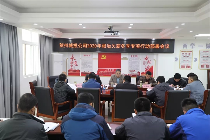 12月2日上午,为全面贯彻落实集团公司根治欠薪冬季专项行动动员部署会议精神,贺州城投公司召开2020年根治欠薪冬季专项行动部署会议,贺州城投公司总经理兰乾雄主持会议并讲话,公司各项目分管领导,各有关部门、子公司人员参加会议。