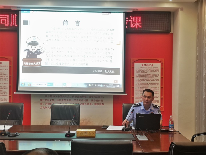 为进一步加强渣土运输车辆管理,有效治理扬尘污染,提高渣土车司机安全运输意识,预防道路交通事故,11月19日,广泽公司下属同顺渣土运输公司邀请到贺州交警一大队长副大队长黄俊杰为公司驾驶员讲授交通安全宣传课。广泽公司副总经理、同顺公司执行董事黄岩琪参加了宣传课。